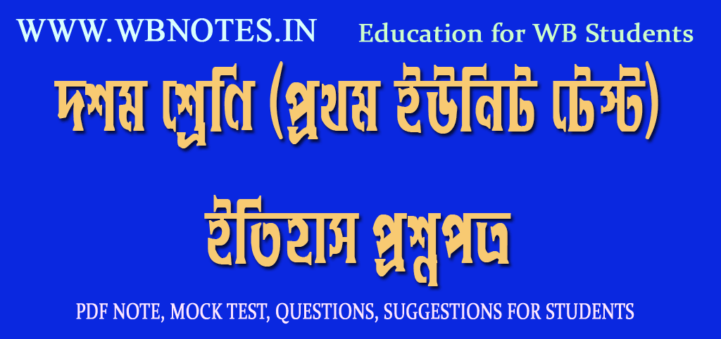 দশম শ্রেণির শিক্ষার্থীদের জন্য আমাদের WBNOTES.IN ওয়েবসাইটের পক্ষ থেকে দশম শ্রেণির ইতিহাস প্রশ্নপত্র (প্রথম ইউনিট টেস্ট) প্রদান করা হলো। এই ইতিহাস প্রশ্নপত্রটি অনুশীলনের মধ্য দিয়ে দশম শ্রেণির শিক্ষার্থীরা তাদের প্রথম ইউনিট টেস্ট ইতিহাস পরীক্ষার প্রস্তুতি গ্রহন করতে পারবে। আমাদের ওয়েবসাইটে শিক্ষার্থীদের জন্য নিয়মিত বাংলা, ইতিহাস, ভূগোল প্রভৃতি বিষয়ের আলোচনা প্রদান করা হয়। আমাদের ওয়েবসাইটের সকল প্রকার আপডেট লাভ করতে নিয়মিত আমাদের ওয়েবসাইটটি ভিজিট করতে হবে।