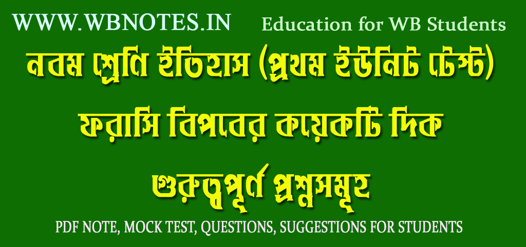 ফরাসি বিপ্লবের কয়েকটি দিক – গুরুত্বপূর্ণ প্রশ্নসমূহ । নবম শ্রেণির প্রথম ইউনিট টেস্ট ইতিহাস :