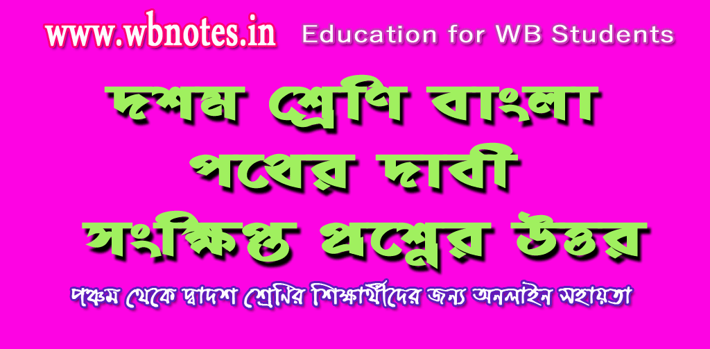 WBNOTES.IN ওয়েবসাইটের পক্ষ থেকে দশম শ্রেণির মাধ্যমিক শিক্ষার্থীদের জন্য পথের দাবী গল্পের সংক্ষিপ্ত প্রশ্নের উত্তর প্রদান করা হলো। মাধ্যমিক পরীক্ষা দিতে চলা দশম শ্রেণির শিক্ষার্থীরা এই সংক্ষিপ্ত প্রশ্নের উত্তরগুলি তৈরি করে তাদের পরীক্ষা প্রস্তুতি গ্রহণ করতে পারবে।