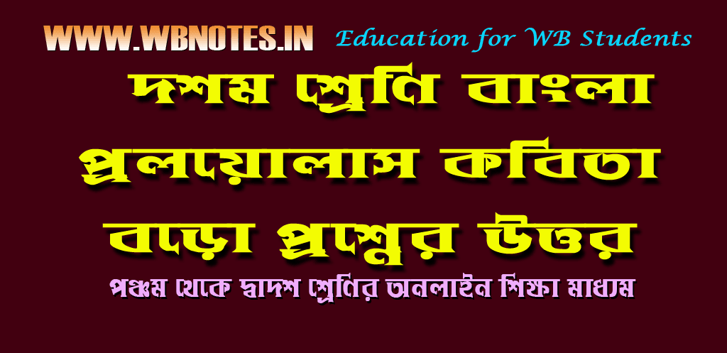 প্রলয়োল্লাস কবিতার বড়ো প্রশ্নের উত্তর । দশম শ্রেণি বাংলা :